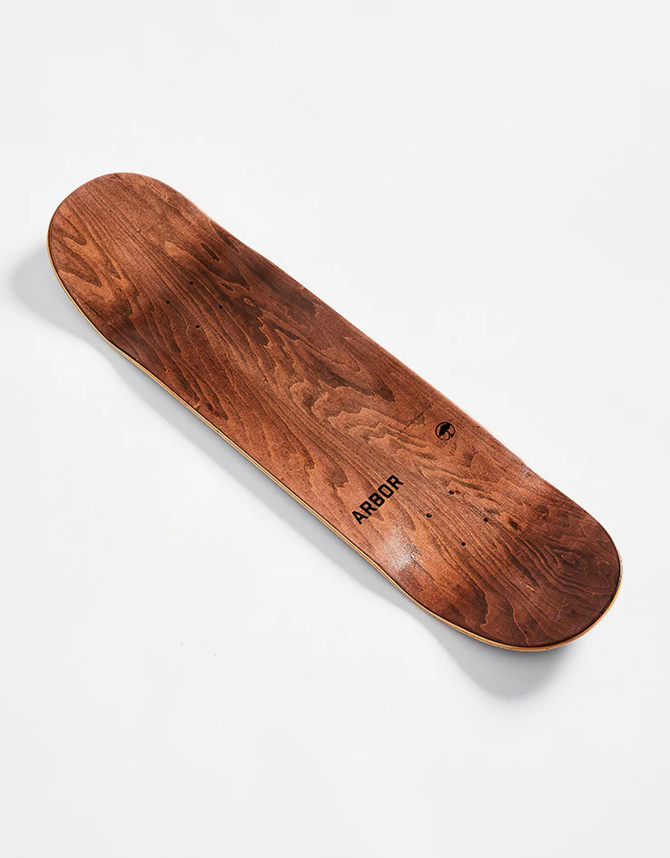 The Arbor Surplus Street Series Skateboard Deck is a team board coming in a variety of widths with a medium concave developed by our team for versatile all-terrain skating. Featuring Arbor branding in a wood veneer on a black background.