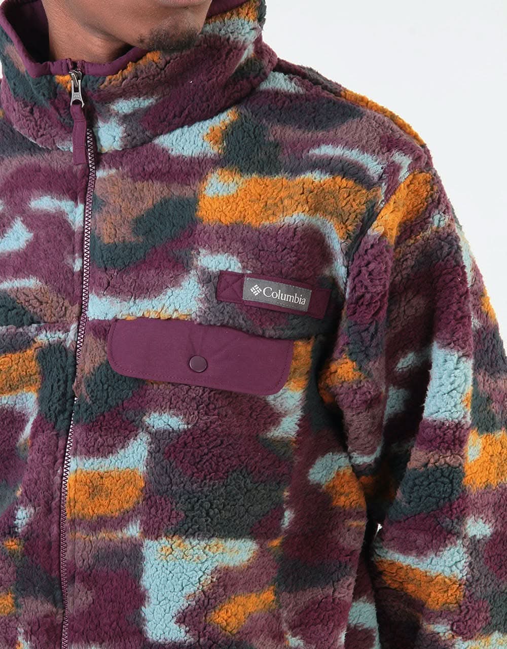The Columbia Mountain Side Heavyweight FZ Fleece in Black Cherry Camo has been constructed from a 100% Polyester Sherpa-pile fabric with an all-over jacquard design. It features a full-length zip placket, a high collar and two side handwarmer pockets. Complete with elasticated cuffs, a chest flap pocket and a woven branding label on the chest.